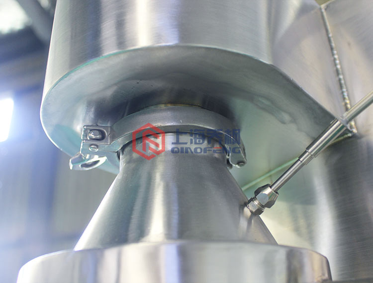 壓力噴霧干燥機(jī)機(jī)長(zhǎng)時(shí)間運(yùn)行或因操作不當(dāng),部分設(shè)備內(nèi)會(huì)出現(xiàn)集料而影響正常運(yùn)行,此時(shí)需停止工作進(jìn)行清洗。對(duì)于干燥塔內(nèi)集料的清理,應(yīng)打開清掃門,用長(zhǎng)把掃帚掃除漏斗形底部集料,打開出料閥,用自來(lái)水沖洗塔內(nèi)。旋風(fēng)分離器內(nèi)集塵的清除,同樣需要打開旋風(fēng)分離器,用掃帚清掃集料,必要時(shí)也需用水沖洗。對(duì)于袋式除塵器的清理,應(yīng)打開控制開關(guān),連續(xù)敲打,然后打開清洗門,敲打布袋除塵器,對(duì)噴霧干燥機(jī)zui后更換過濾袋。對(duì)于料漿管路系統(tǒng)的清理,應(yīng)打開雙向過濾器的排污閥,清洗過濾器濾網(wǎng)和管路,然后打開料泵,以水代料,清洗泵管、穩(wěn)壓包及管道。
