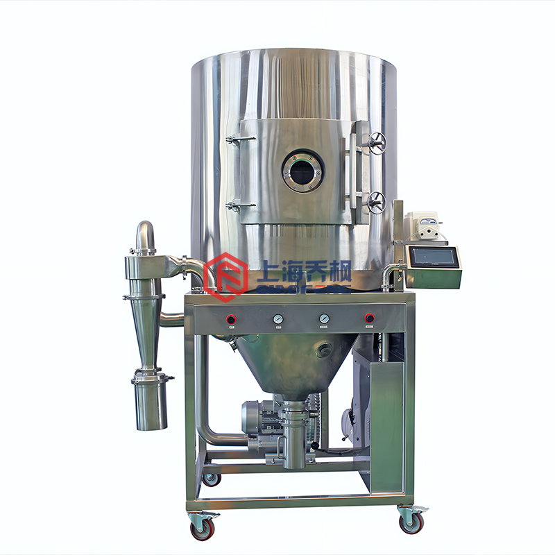 噴霧造粒干燥機是上海喬楓自主研發的一套造粒噴霧干燥機的。QFN-ZL系列造粒噴霧干燥機(喬楓)專門的雙氣送液造粒噴頭,國內一大創新,直接將均勻的球形霧滴通過均勻的熱量變成顆粒。