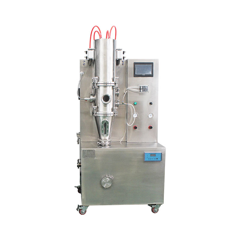 1)噴霧造粒包衣機多功能一步制粒機操作方便:控制系統采用PLC自動控制,彩色觸摸屏操作,實驗過程中實驗參數如進風溫度,出風溫度,物料溫度,風機轉速,噴霧壓力等可以根據實驗需要即時更改,方便用戶使用;