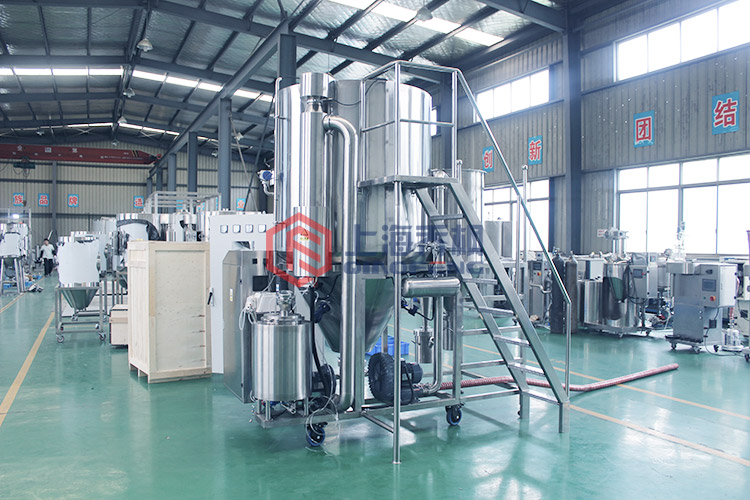 為了防止材料受到污染并延長設備的使用壽命,與材料接觸的所有部件均由不銹鋼制成。 噴涂后,液體霧化成分散的顆粒,表面積大大增加。 在與熱空氣接觸后,干燥過程可以在很短的時間內完成。 在正常條件下,100%至98%的水可在100至150℃下蒸發1至3秒。 由于干燥過程在瞬間完成,因此最終產品的顆??梢曰旧媳3峙c液滴類似的球形,從而具有良好的分散性,優異的可沖泡性和高溶解性。
