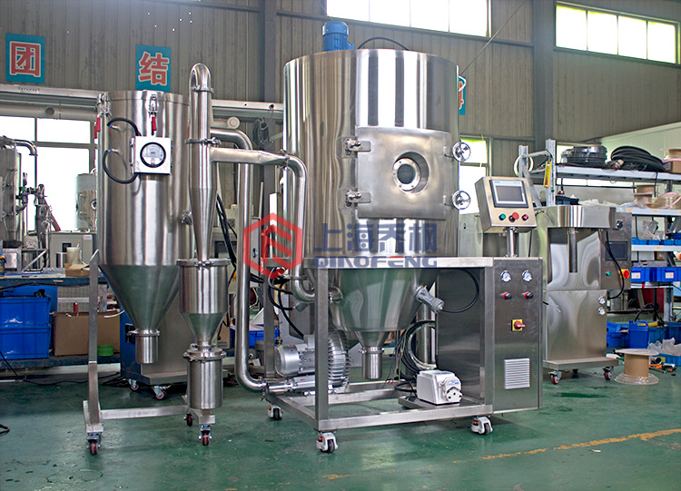 采用氣流霧化噴嘴和離心霧化器兩種進行結合,為離心氣流雙用噴霧干燥機,大屏幕彩色觸摸屏操作,全自動控制和手動控制相結合,中英文面板,參數液晶顯示。實時PID恒溫控制技術,精確控溫,加熱控溫精度1℃。干燥速度快,一般只有1-1.5秒,具有瞬間干燥特性。物料的干燥過程可在短時間內完成,適用于熱敏性物料的干燥,并能保持物料原有的特性。生產過程簡化,智能觸摸屏程序控制方便,適合實驗和連續控制生產請聯系我們的工作人員定制生產噴霧干燥機。產品分散性、流動性、溶解性非常好。